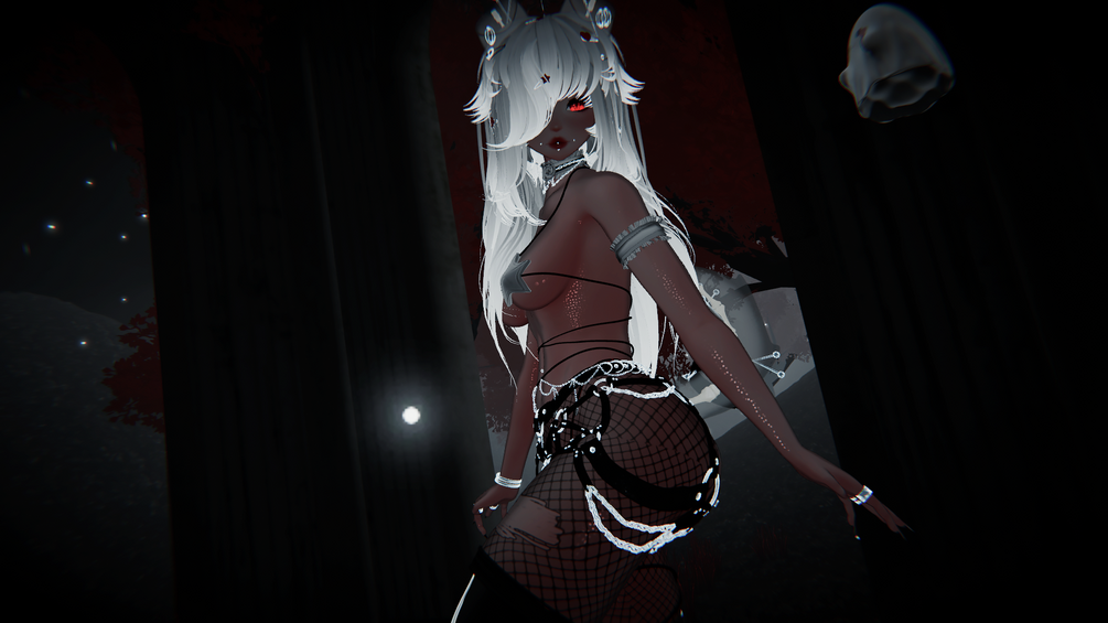 hair textures: nikkie ( https://nikkiepng.com ), wetcat ( https://wetcat.gumroad.com/ )head: cicieaaa ( https://cicieaaavr.gumroad.com/l/cicis3 )body: zinpia ( https://zinpia.sellfy.store/ )base body & head tex: yingyangvr ( https://yingyangvr.gumroad.com )boots, undies: nauuki (icons: Maddiiee#7341 ( https://maddiiee.gumroad.com/ )arms / choker / hipchain: koragira ( https://koragira.gumroad.com/)tongue: eggly69 ( https://payhip.com/Eggly69 )hair pins: moonlight peach#3252 ( https://moonlightpeachh.gumroad.com/)long hair: nessyy. ( https://nessy.store/ )eye tex: ryuohh ( https://ko-fi.com/ryuohh/shop )leg harness: renipuff ( https://payhip.com/renipuff )fishnet texture: Yukina#2842 ( https://yukina.gumroad.com/ )tattoos: riggatony ( https://riggatonyvr.gumroad.com/ )particles: Kisu☆#1000 ( https://kisustar.gumroad.com/)ears / tail: wen.3d ( https://payhip.com/wen )everything else made by me, illumevr.
