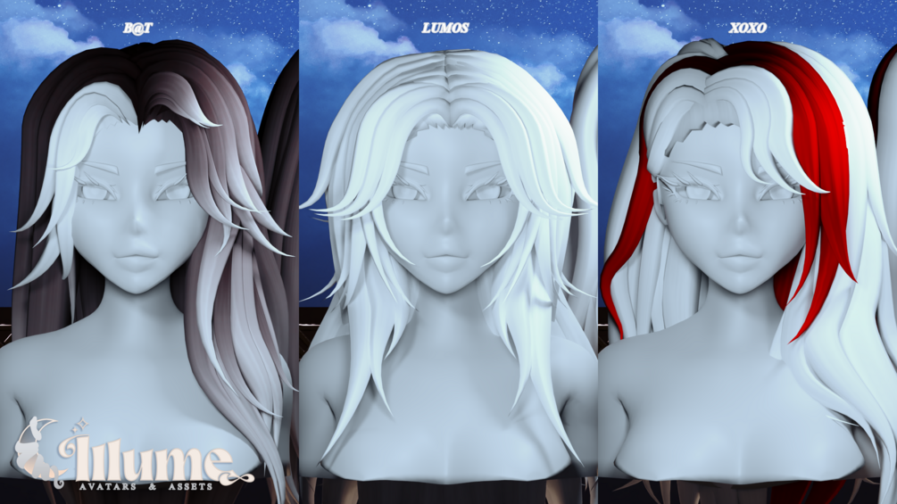 Commercial License for either "B@T" "Lumos" or "XOXO" 's hair. Head/Body is NOT included, this is only the corresponding fbx of either or all options.